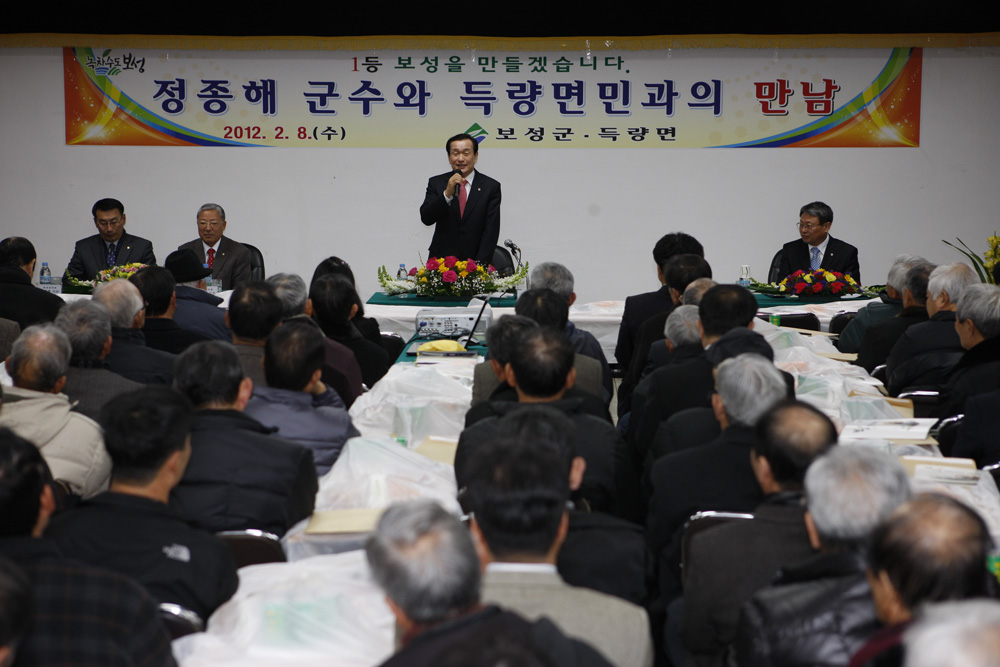 군민의 뜻 수렴, 1등 보성․잘사는 보성 실현 보성군(정종해 군수)은 2012년 신년을 맞아 열린 군정과 참여 행정 구현을 위해 7일부터 오는 15일까지 12개 읍․면을 방문해 군민과의 대화를 개최할 계획이다. 이번 대화는 군수가 해당지역 출신 도의원, 군 의원과 함께 농정, 지역개발, 건설 등 소관 실..