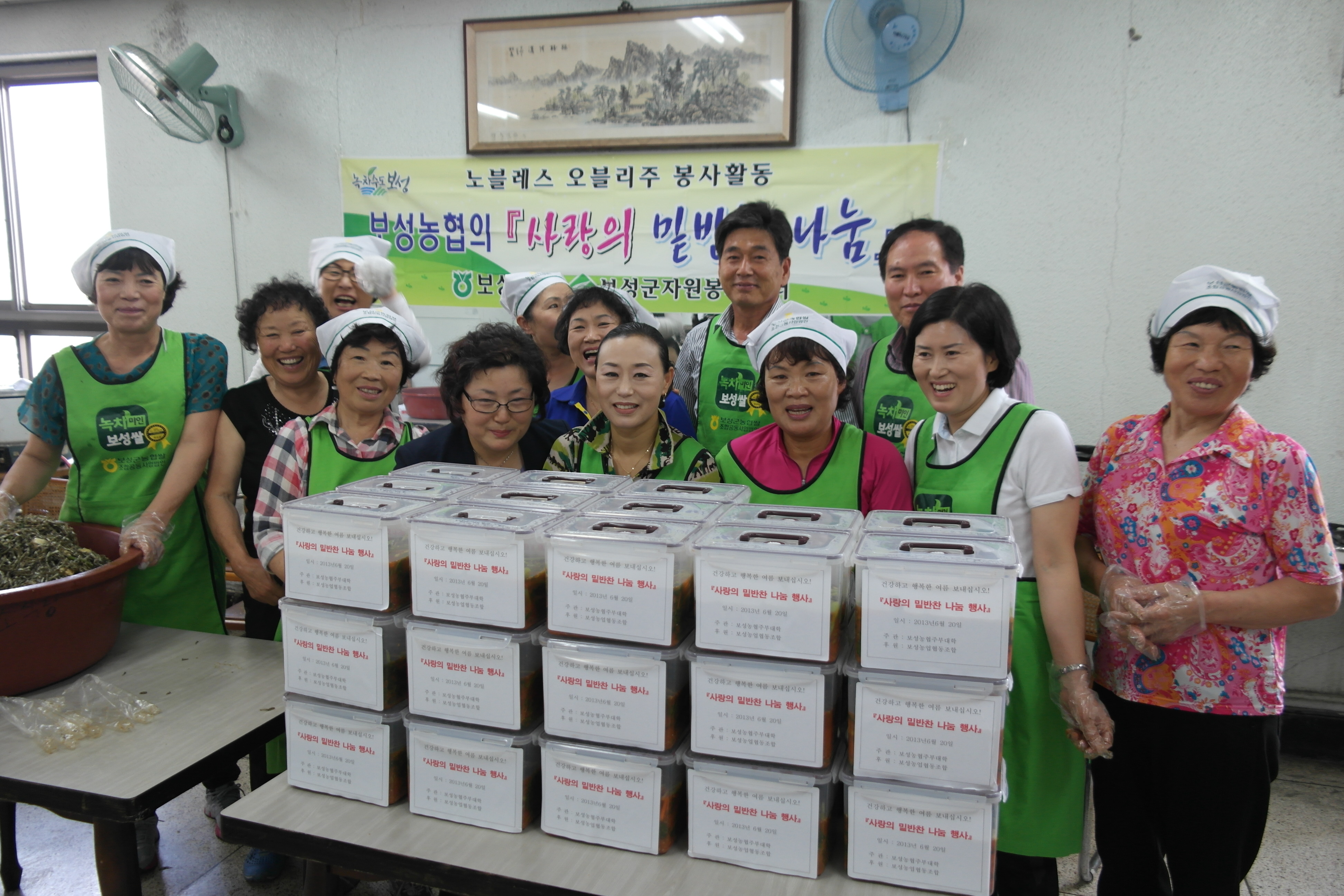 보성군(군수 정종해)에서 실시하고 있는 노블레스 오블리주 봉사활동에 보성농협(조합장 문병완)이 “사랑의 밑반찬 나눔”이라는 주제로 참가해, 조손가정과 독거어르신들에게 사랑의 밑반찬 3종 세트와 마트 이용권을 전달하여 어려운 이웃들에게 더운 여름에 시원한 청량제 역할을 하였다. 봉사활동에는 보성농협 문병완 조합장과 직원들 및 고향생..