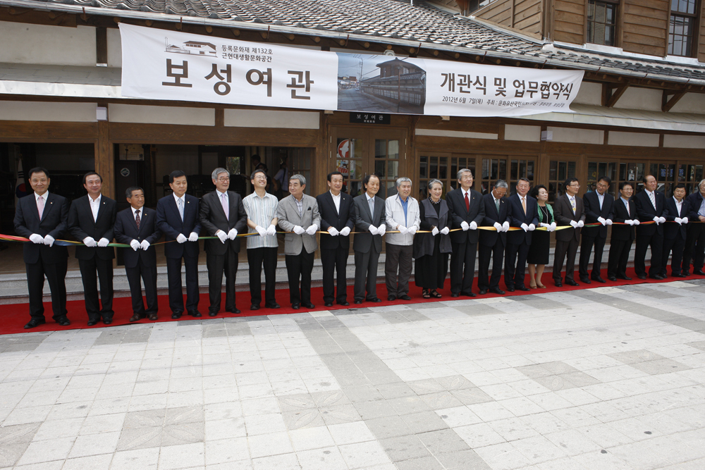 보성군(군수 정종해)과 문화유산국민신탁(이사장 김종규)이 주관하고 문화재청, 전라남도가 후원한 보성여관(등록문화재 제132호) 개관식이 7일 오후 2시 벌교읍 현지에서 성황리에 열렸다. 이날 개관식에는 정종해 보성군수와 김찬 문화재청장, 그리고 문화유산국민신탁 김종규 이사장, 소설 <태백산맥>의 조정래 작가, 영화 <태백산맥>의 임권..