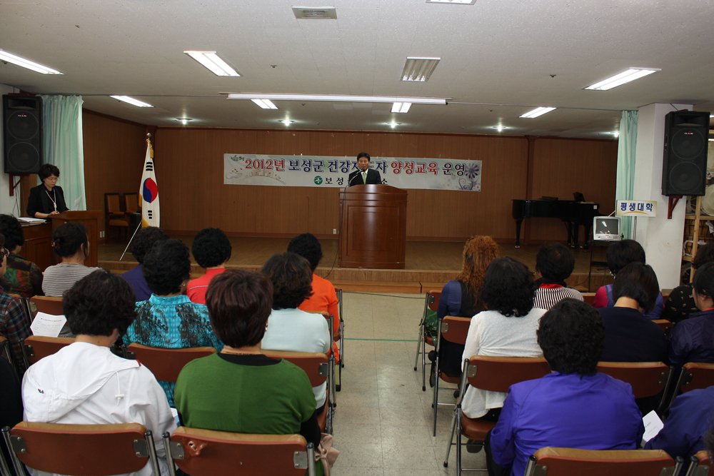 보성군(군수 정종해)은 지난 5일 관내 자원봉사회, 노인 돌보미, 관심 있는 일반주민 등 40여명이 참여한 가운데 제2기 보성군건강지도자 양성교육을 개강했다. 이번 교육은 보성종합사회복지관에서 11월 26일까지 2개월 과정으로 주1~2회 기초건강검진을 시작으로 건강이론교육, 전문실기체험교육 건강체조 라인댄스, 밴드스트레칭, 근력운동, 웃음요법 레크레이션..