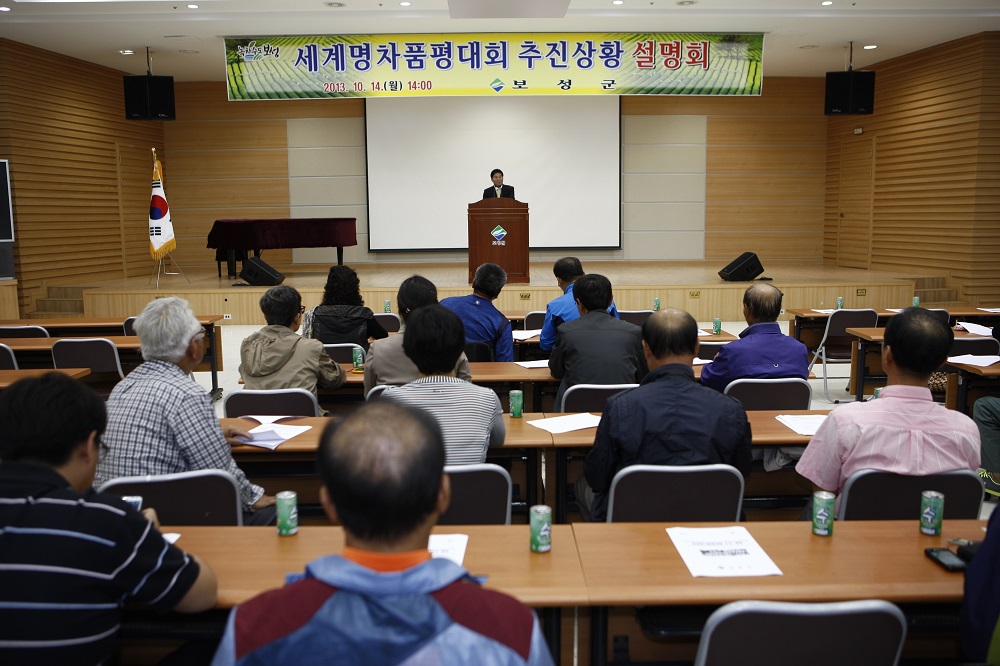 차의 본고장 보성군(군수 정종해)은 지난 14일 군청 대회의실에서 관내 차 생산농가 및 업체 등 40여명이 참석한 가운데 세계명차품평대회 추진상황 설명회를 개최했다. 이번 설명회는 세계명차품평대회 조직위원회(위원장 여연)로부터 국제적인 차 산업가와 전문가들의 교류를 통해 보성 차의 세계화를 꾀하고자 하는 대회 추진배경과 진행사항을 설명하는 자리로 진행..