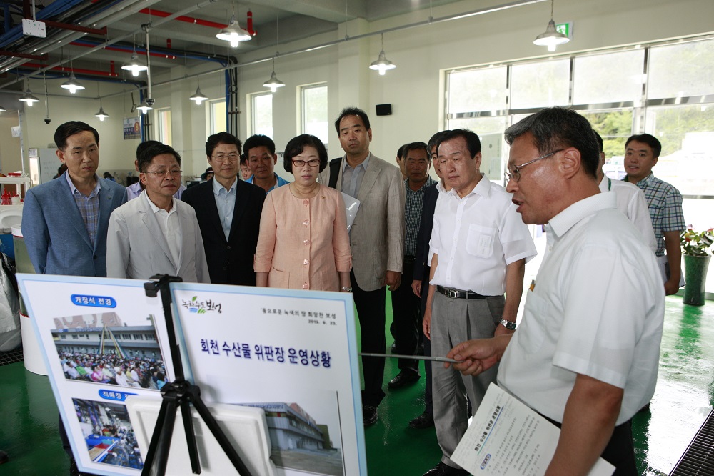 지난 23일 보성군(군수 정종해)에 위치한 보성회천수산물위판장을 방문한 윤진숙 해양수산부 장관은 보성 지역의 어업인들과 수산정책에 대한 의견을 청취하고 여론을 수렴하였다. 윤 장관은 최근 7월에 개장한 보성회천수산물위판장을 둘러보고 위판장 현황과 운영 상황 등을 보고 받았다. 정종해 군수는 총 사업비 400억 원이 투입되는 율포 해양종합휴양지 ..